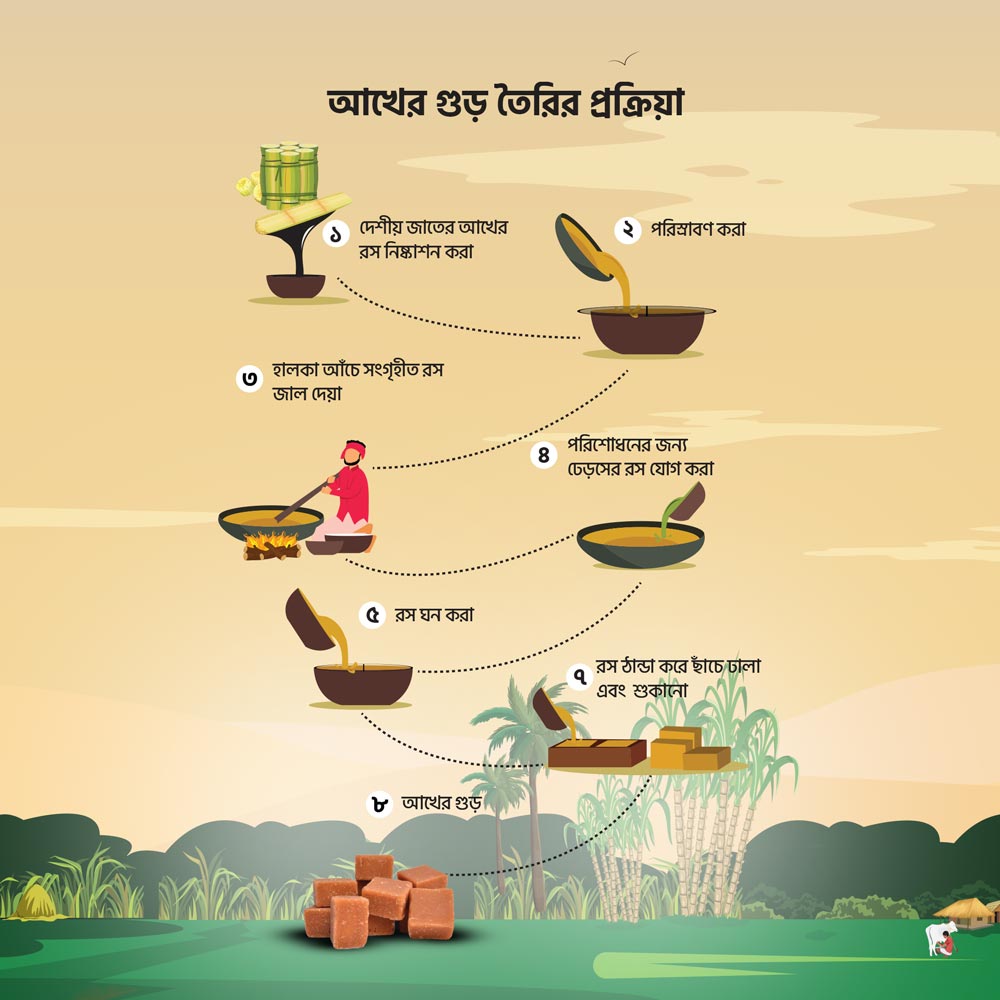বাংলাদেশের রাজশাহীর বিভিন্ন জেলার সবুজ ক্ষেত থেকে প্রাপ্ত আখ থেকে প্রস্তুত করা হয় ‘হেলদি ইটস আখের গুড়ের গুড়ো’। বিশুদ্ধতার প্রতি আমাদের অঙ্গীকার অটুট, কারণ আমরা গুড় তৈরী প্রক্রিয়ায় কোনো রাসায়নিক বা সংরক্ষণকারী ব্যবহার করা থেকে বিরত থাকি।